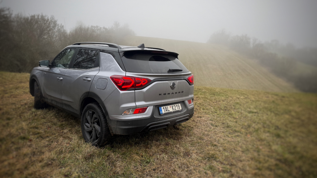 ale pokud se vyjede ven, je potřeba počítat s tím, že člověk řídí takzvanou „krabici“. Na dálnici to na závody není, ale v běžných rychlostech, když se potřebujete připojit do pruhu, výkon naprosto stačí. A asi nikdo nečeká, že bude takový motor akcelerovat z nuly na 100 za 3 vteřiny, nicméně za plynem jde poměrně ochotně, i když nemáte zapnutý režim Sport. Když vyjedete do zatáček mezi vesnicemi, je potřeba jet malinko s rozvahou a počítat s tím, že Korando nemá úplně super sportovní brzdy, takže je potřeba začít brzdit o malinko dřív, než by si člověk představoval. Vzhledem k lehké nedotáčivosti jsem asi ve dvou nebo třech zatáčkách měla takzvaně plné ruce práce, abych nevyjela do protisměru a na přidání plynu už mi přišlo, že jedu vlastně strašně rychle.