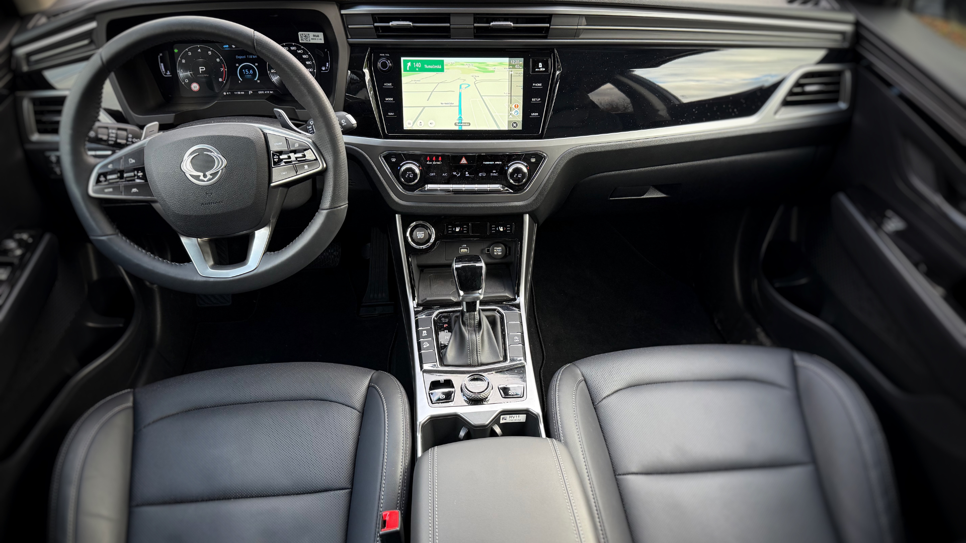 Černý celokožený interiér je taková třešnička stejně jako lesklý panel před spolujezdcem nebo citlivě vedené osvětlení dveří, které je designově propojené s ovládacím displejem. Tady celkem není co vytknout, dokud tedy jedete za denního světla. Bohužel po setmění přijde moje rozmazlenost, kterou trpím, a to je nedostatečné ambientní osvětlení. Není osvětlen ani prostor pro nohy, a pokud nemáte nahmatané všechny páčky na první dobrou, budete hledat naslepo,což v momentě, kdy chcete zapnout třeba mlhovky, je lehce nekomfortní. A přiznám se, že jsem si několikrát zapínala LED žárovku nad sebou, abych našla správné tlačítko. Ovládání LEDky jemimochodem umístěno přesně vedle SOS tlačítka, kterým Korando disponuje též. Ale uznávám, že pokud Korando bude vaše jediné auto, nejspíš se rychle správné hmaty naučíte a je to spíš o zvyku.V interiéru najdete pohodlné sedačky s fajn bočním vedením a v prémiové verzi s elektrickým ovládáním, s vyhříváním i větráním, což je moc příjemné, vzhledem k tomu, že jsou kožené :-).