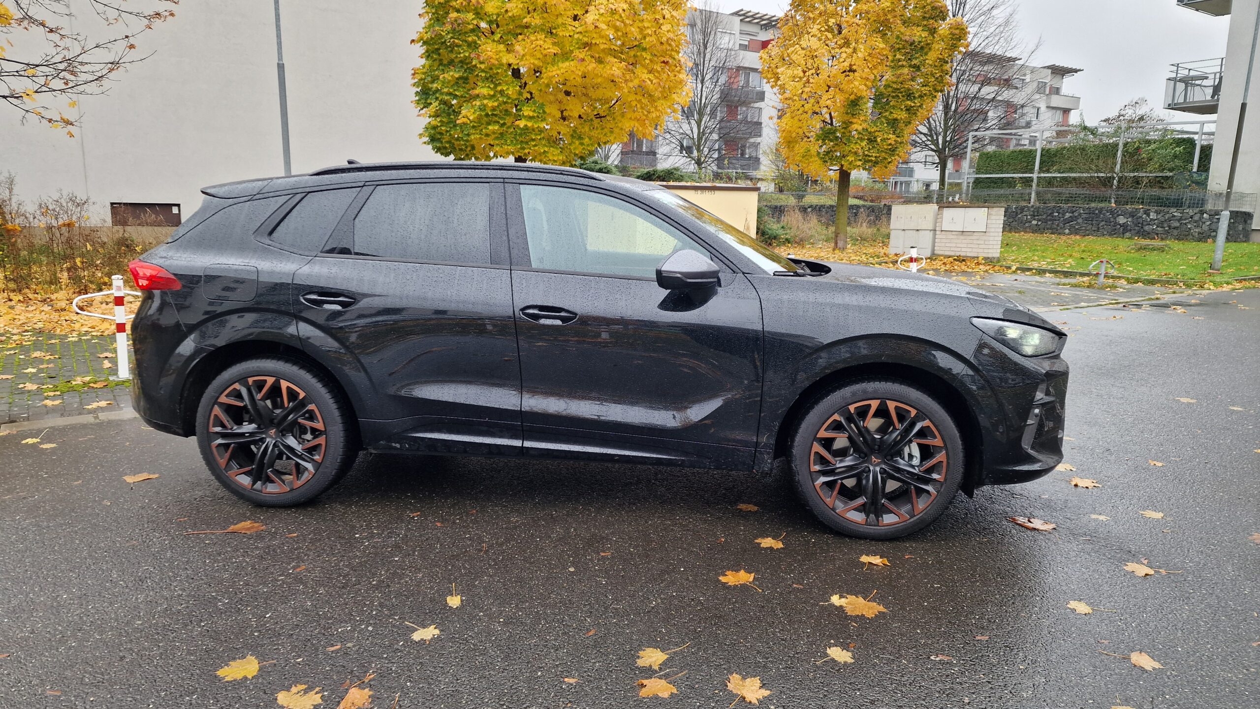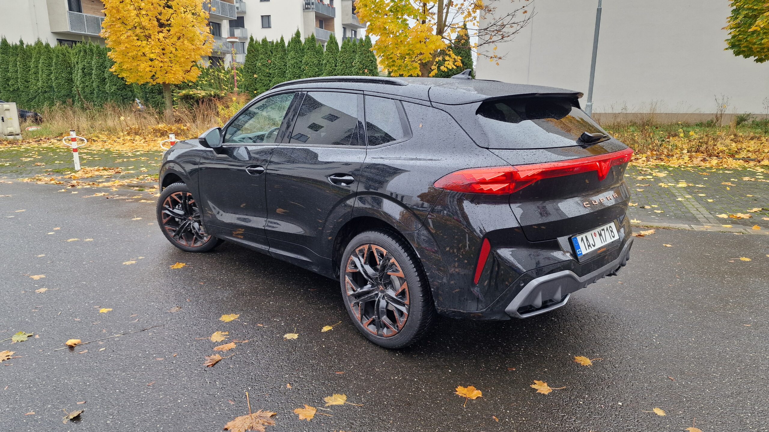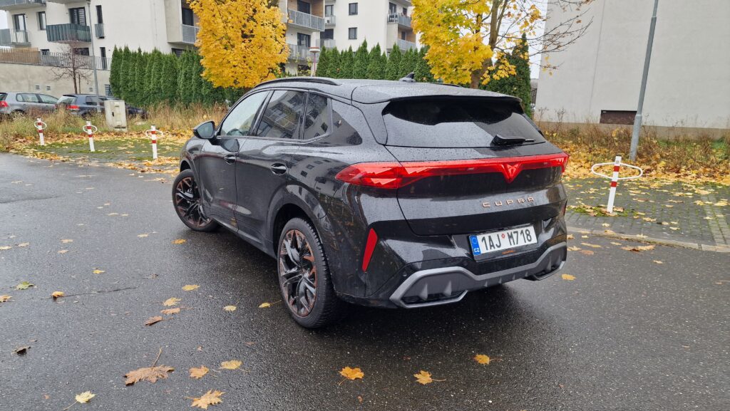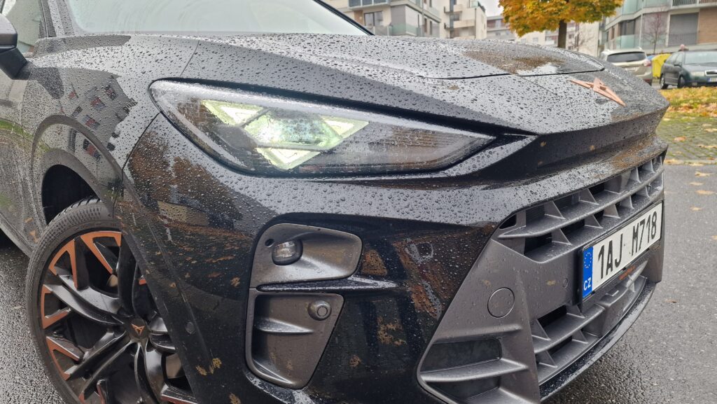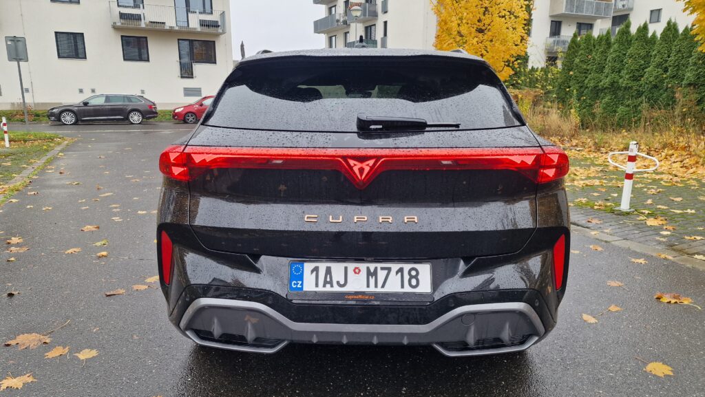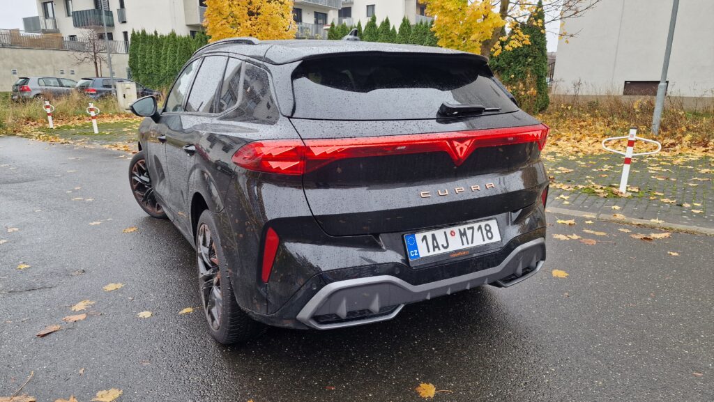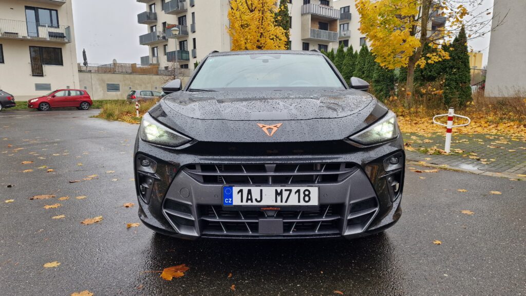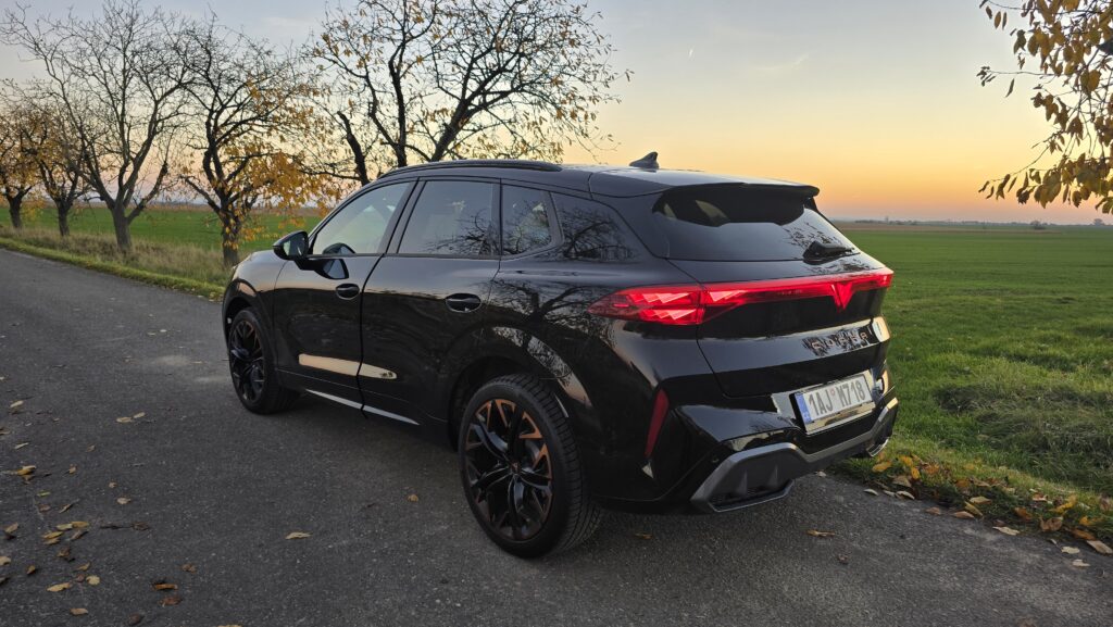 Cupra a její modelová řada nedávno prošla designovou obměnou s cílem sjednotit tvář svých modelů a to také můžeme vidět na Terramaru. Jasným poznávacím znamením jsou měděná barva a tři LED trojúhelníky v předních i zadních světlech s osvětleným logem vzadu, sportovní modely ze Španělska si tak s ničím nespletete. A sportovní minimálně vzhledem jsou naprosto bez diskuse. Majestátní maska chladiče, široké boky a náznak difuzoru, opravdu se vás o tom snaží přesvědčit. Ještě drobná poznámka k LED předním světlům, možná byste si mysleli, že budou mít matrix technologií stínění dálkových světel, když tento světelný podpis mají všechny nové Cupry, ale chyba lávky. V základu to jsou totiž obyčejné biLED, tak si dejte případně pozor při výběru skladovek či ojetin.