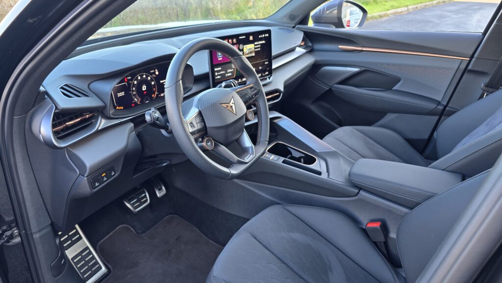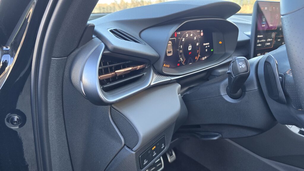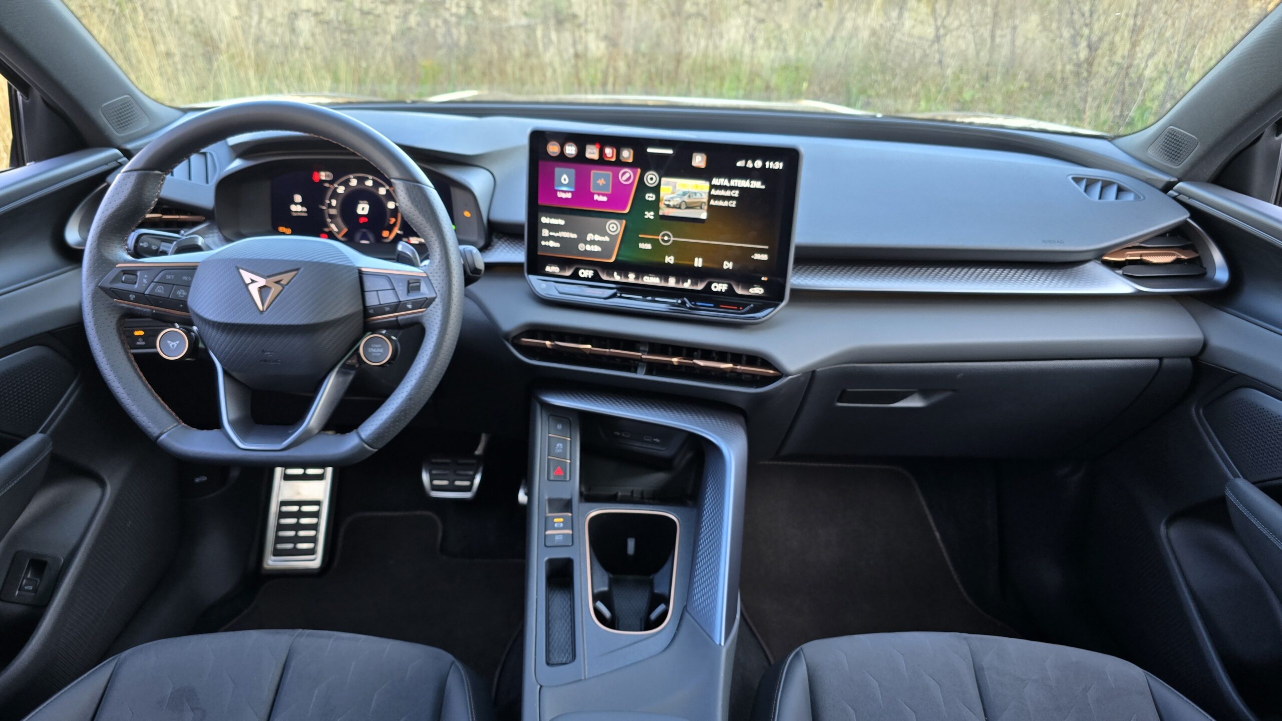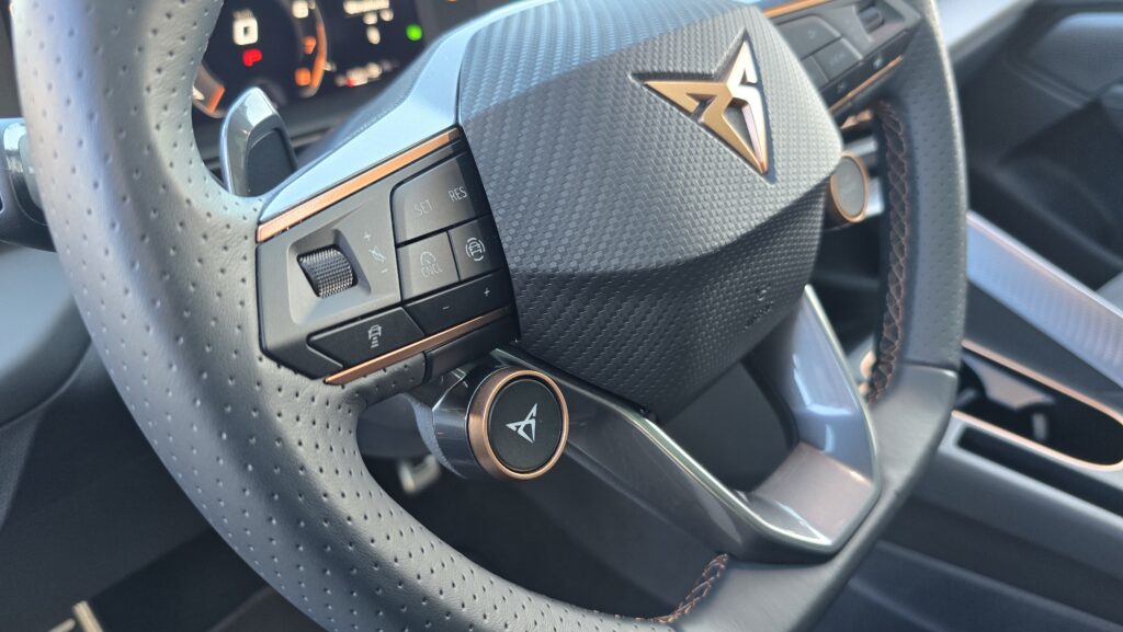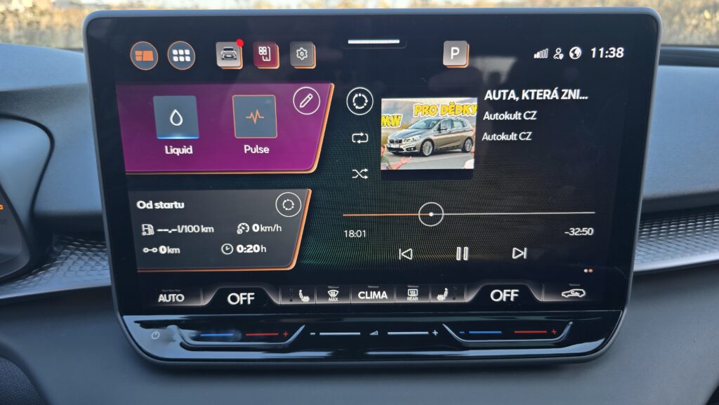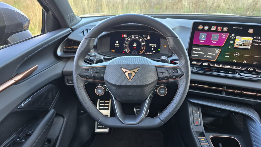 Máte rádi koncernovou logiku, ale VW či Škoda se vám zdají designové fádní? Cupra Terramar přichází se skvělou kombinací funkce a neobvyklého designu. To v dnešní době nejzásadnější, tedy obří středová obrazovka, je stejná jako ekvivalentní VW produkt i s ploškami pod ní na ovládání teploty a hlasitosti audia. Někomu to vadí, já nic proti nemám, ale je to otázka vkusu. Software má sice „Cupří“ vzhled s měděnou barvou, ale principiálně je stejný, tedy solidní funkčnost, individuální zkratky apod. Pro vizuálnější představu vás odkážu na recenzi VW Golf na YT. Je tam ale jedna skvělá vychytávka, po stažení horní lišty vyjede nabídka otravných asistentů s vlastním profilem, kde si můžete všechno nastavit.