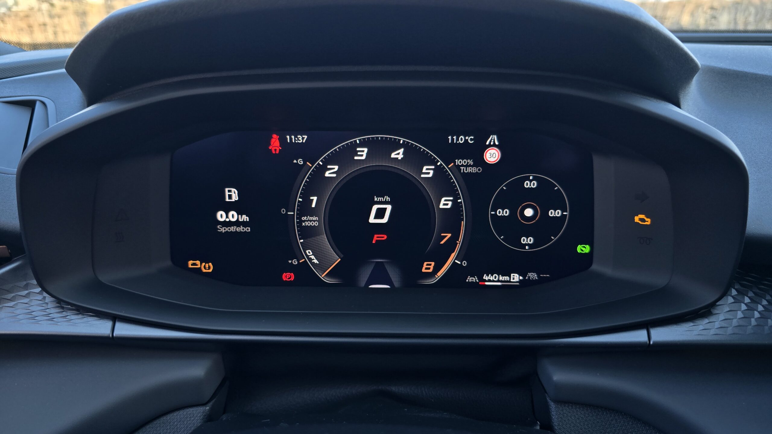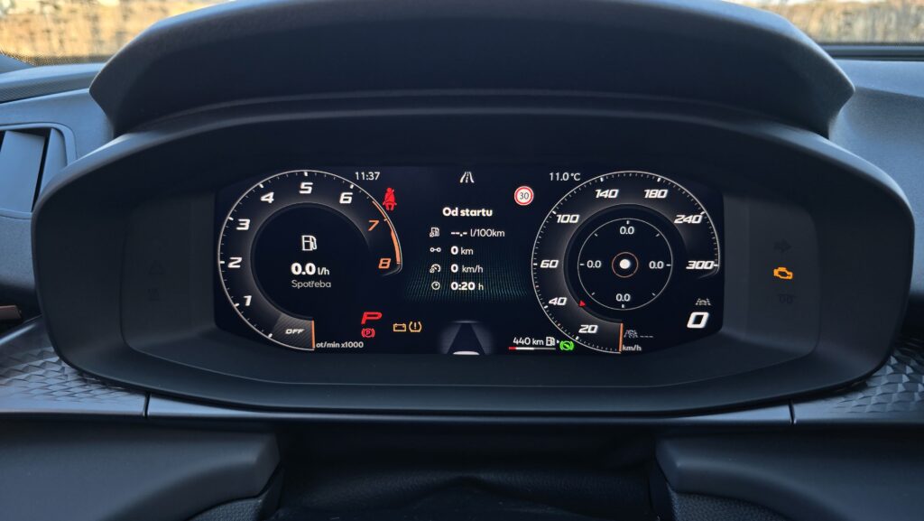 Řidičův displej je opět téměř stejný jak v Golfu, ale nabídka zobrazovaných informací je o něco osekanější, což zamrzí. Naopak potěší příjemný volant se startovacím tlačítkem, který je hezky po ruce. Po ruce jsou i pádla za volantem, které bych u sportovního modelu čekal rozhodně lepší než přítomné lesklé plasťáčky, které máme tady.